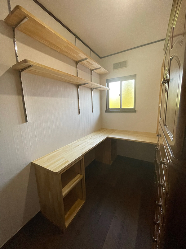 あわせて、寝室に隣接するウォークインクローゼットのタンスなどを整理して、ミシンを常設できる“家事室”としても使いたい、とのご要望でした。