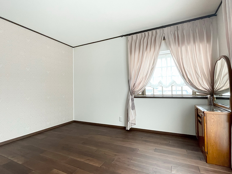 今回のリフォームでは、カーテンがポイントになり、全体が上品でやわらかな空間に仕上がりました。完成後、奥様にも大変喜んでいただき、御希望の寝室がご提案出来て良かったです。